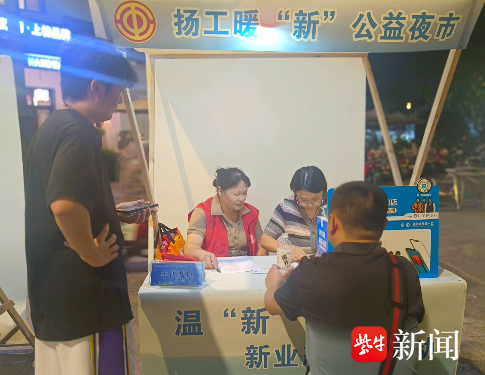 9月30日晚,扬州市总工会、广陵区总工会、市精神文明建设市民观察员协会,在广陵区皮市街开展扬工暖“新”公益夜市——温“新”“1+6”新业态服务日活动。